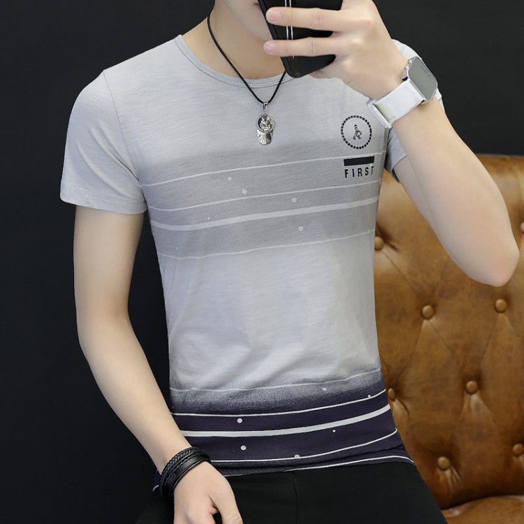 3041 T-shirt da uomo a righe a maniche corte alla moda coreana