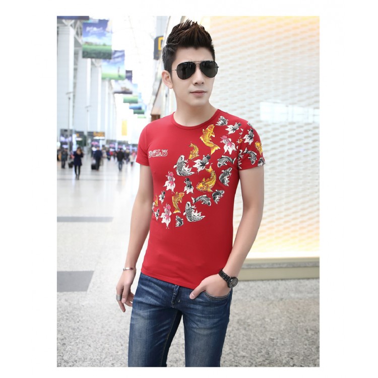 TE9123KDF T-shirt da uomo con motivo ciprinidi con personalità in stile cinese