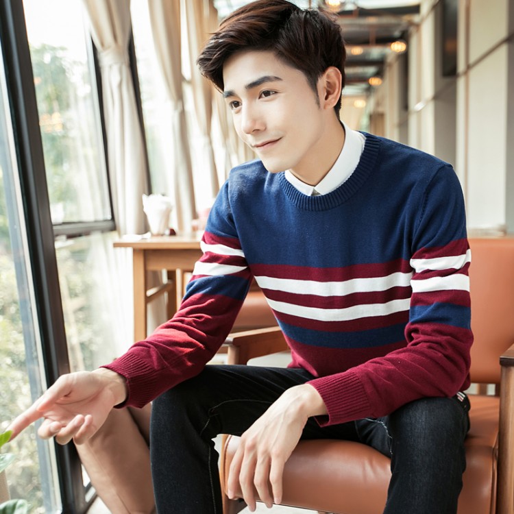 M842 Maglioni uomo elasticizzati girocollo a righe coreane