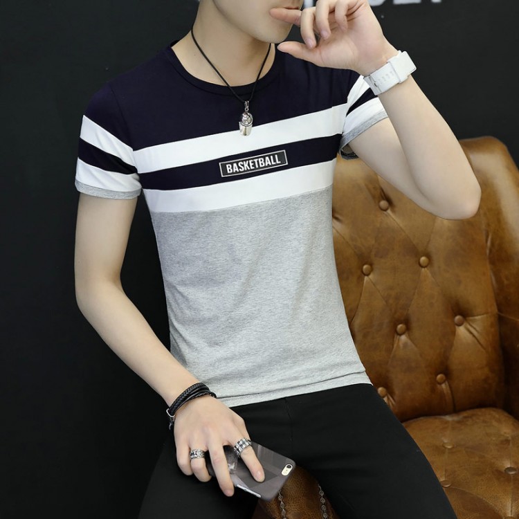 3041 T-shirt da uomo a righe a maniche corte alla moda coreana