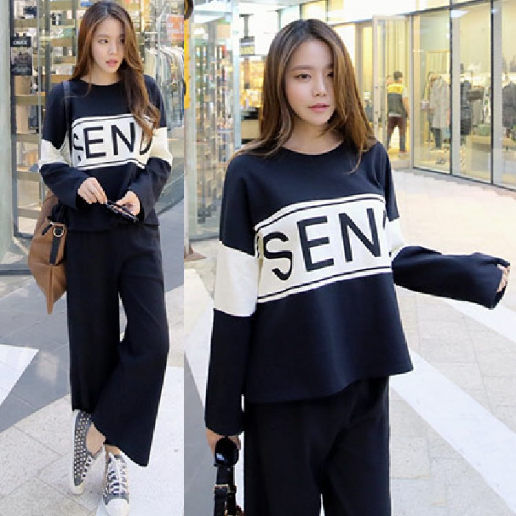 916 Pantaloni casual con nastro in due pezzi e maglione con lettere