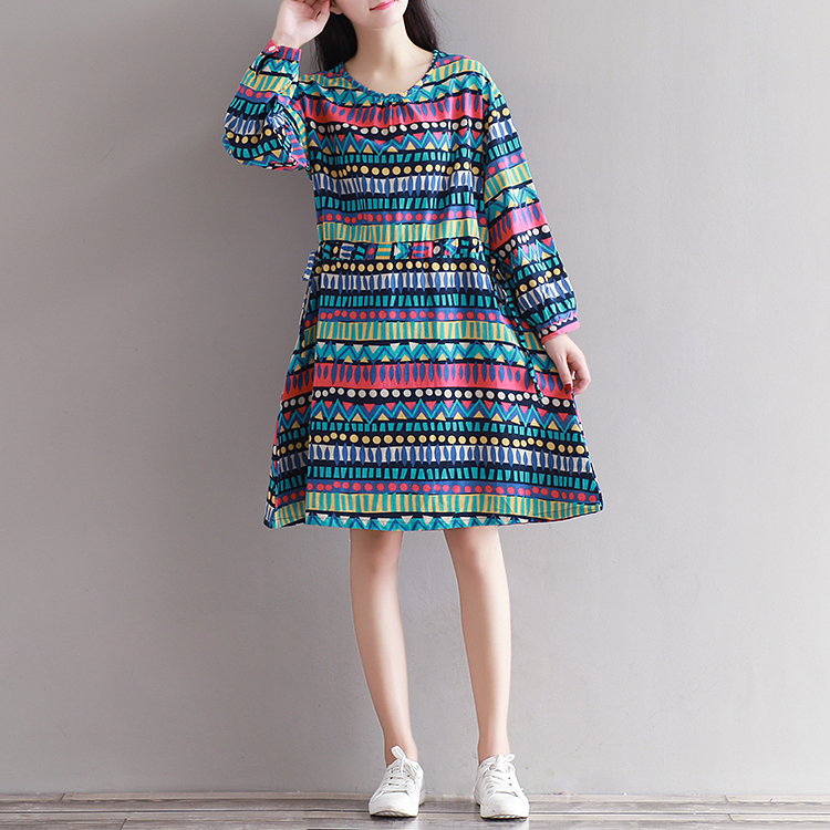 0906 Abito in seta stampata a nove maniche in cotone e lino retrò con letteratura e arte