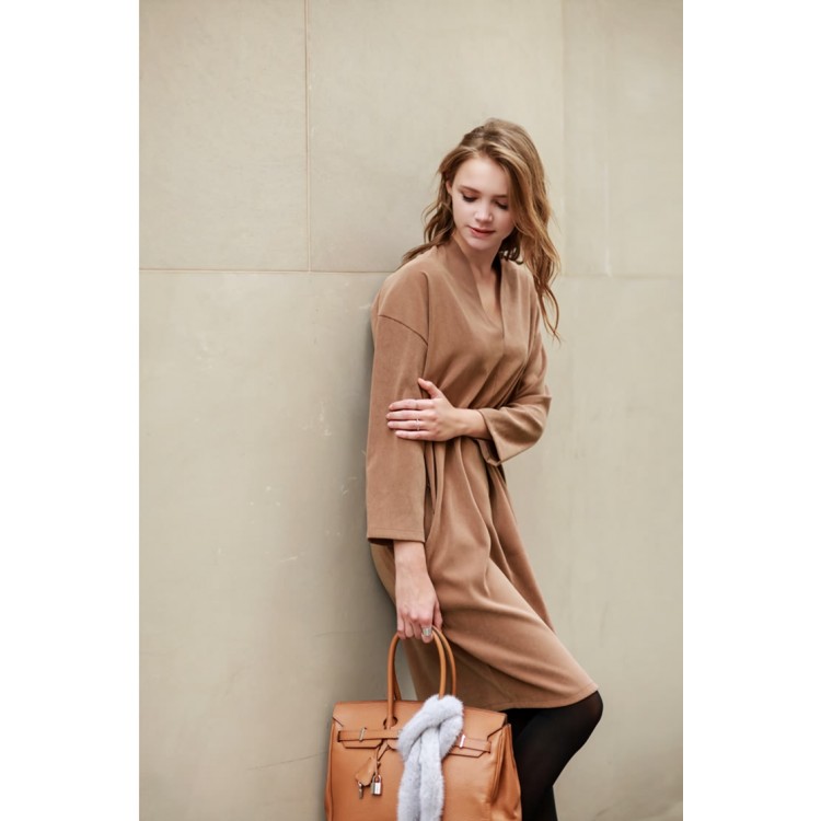 TE1192GJ Abito casual in poly satin con scollo a V, moda europea