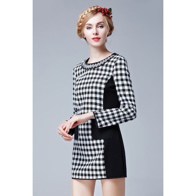 TE9632LLYG Abito slim color pied de poule alla moda europea
