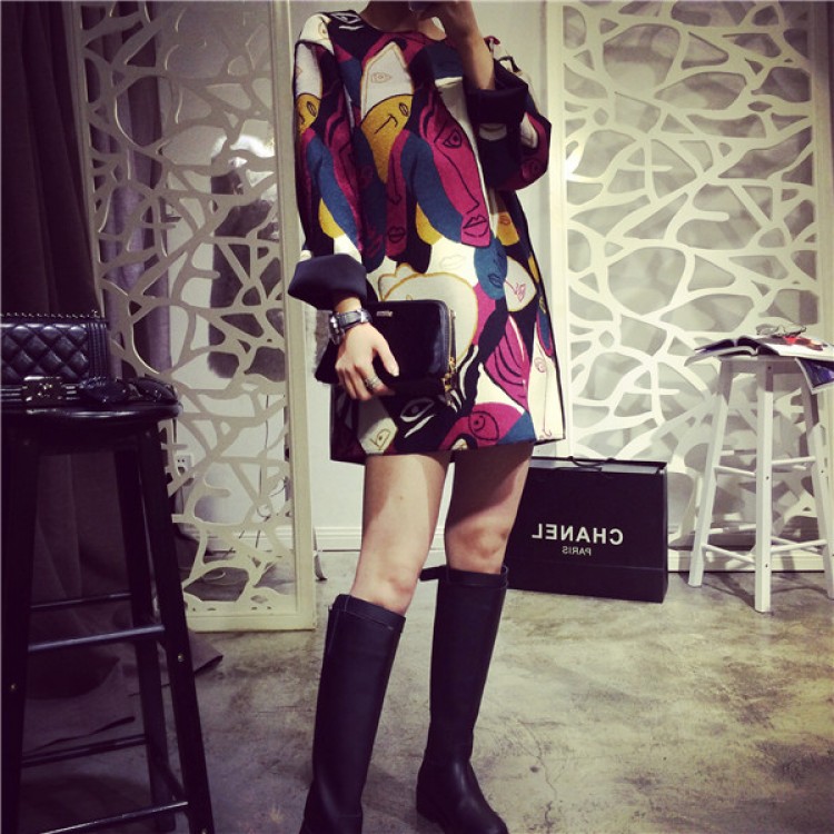 TE1070BQF Abito alla moda con giunzione faccia colorata alla moda europea