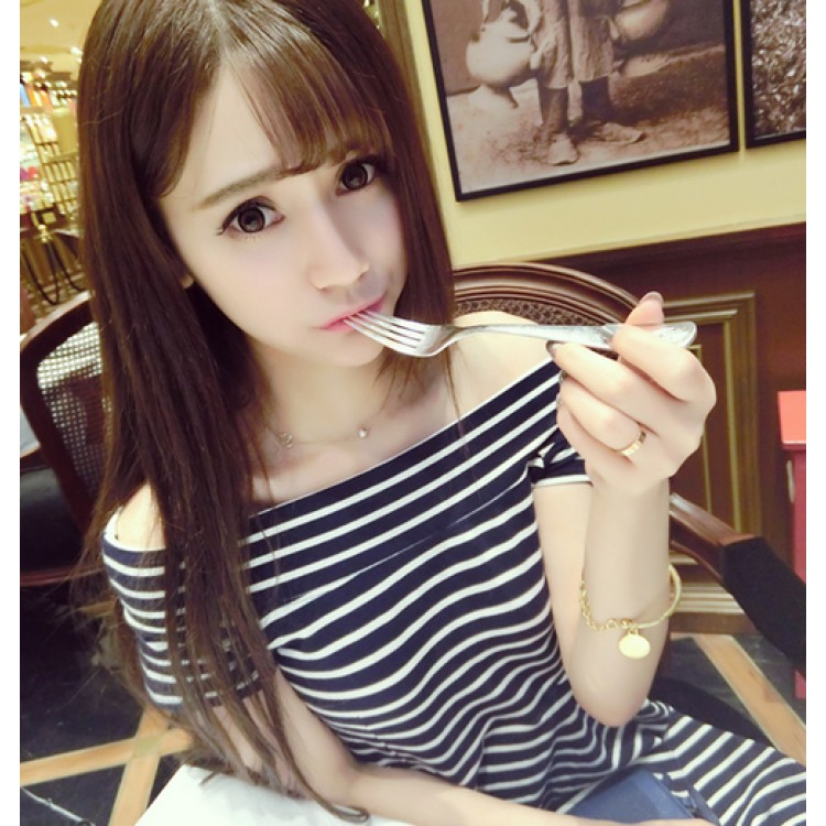TE9337 Abito a vita sottile con spalle scoperte e scollo a barchetta in nuovo stile a righe