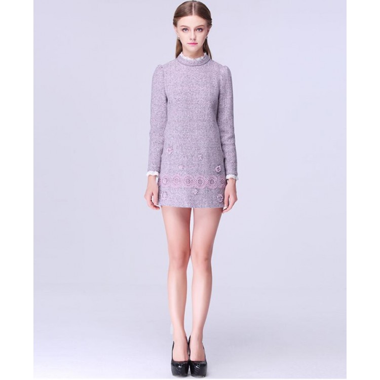 TE9639LLYG Abito a maniche lunghe ricamato con colletto in pizzo moda invernale