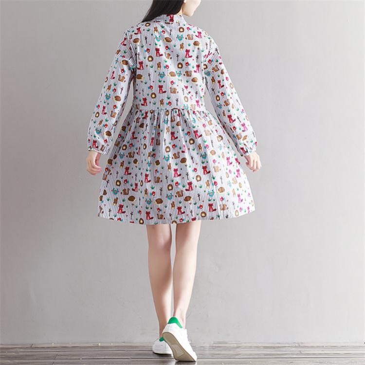 8250 abito con stampa animalier in cotone a righe con scollo tondo in stile retrò taglie forti