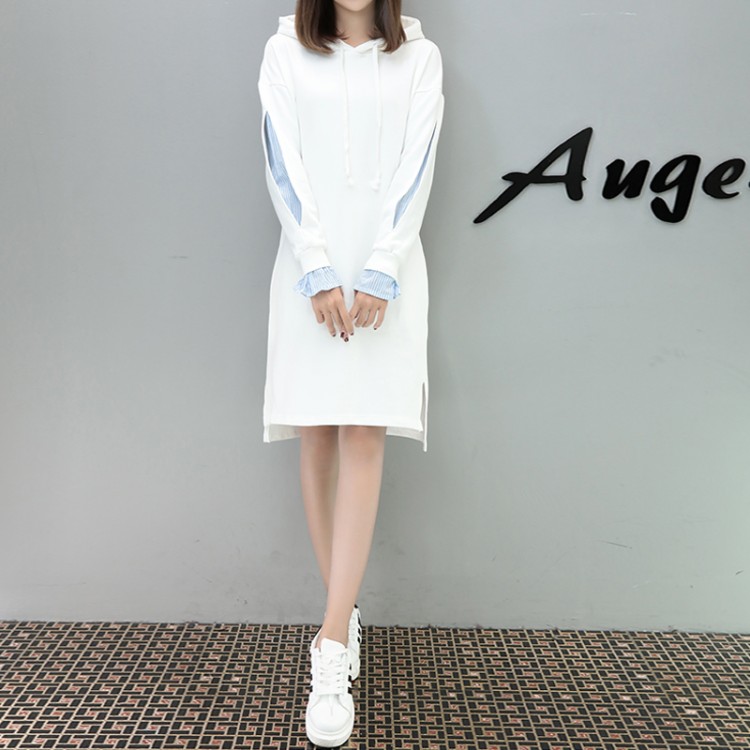TE3081YZS Abito ampio con cappuccio a maniche lunghe con stampa di lettere