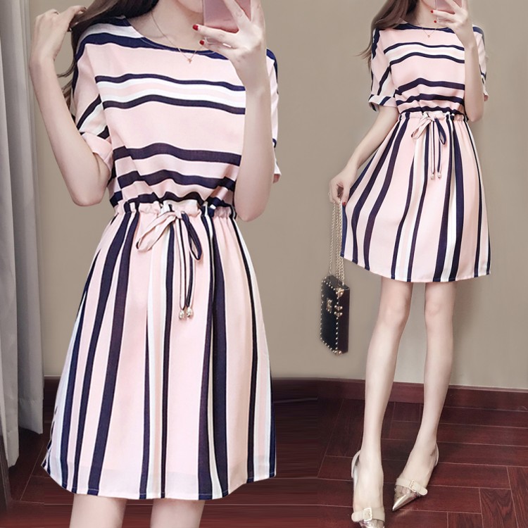 7153 Abito da donna coreano a maniche lunghe in chiffon pieghettato sciolto