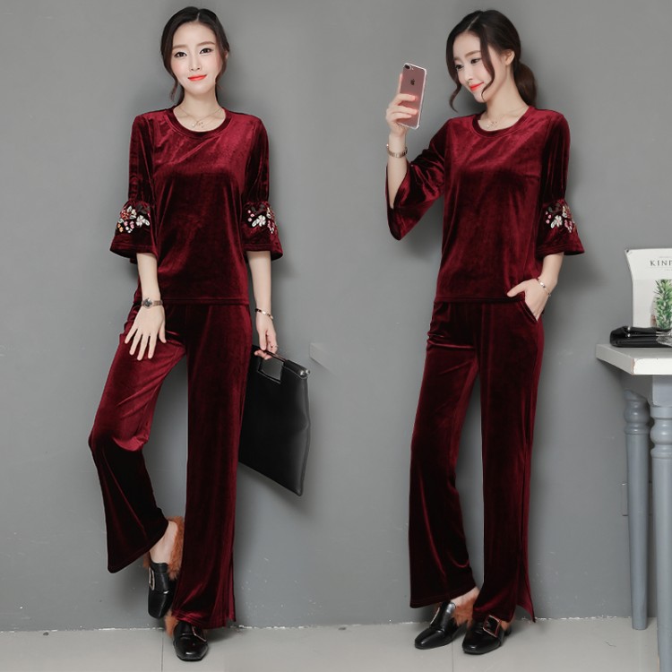 Abito sportivo in velluto dorato con ricamo A075