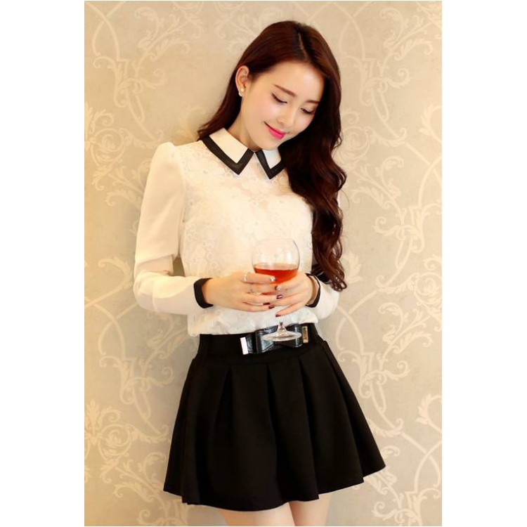 6013 eleganti top aristocratici in pizzo con orlo sottile e ondulato con gonna