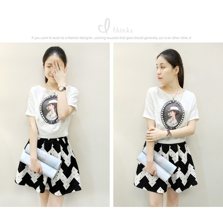 TE3040YZS Top stile sportivo casual a righe bianche e nere con gonna attillata sui fianchi