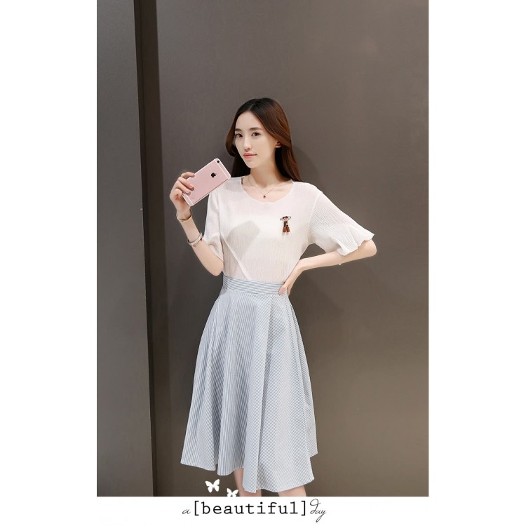 TE8823JDYJ Top alla moda coreana con maniche a balze e gonna a righe