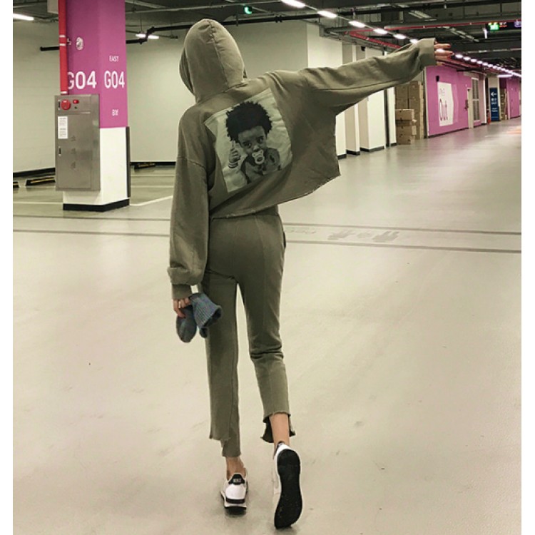 TE9096YSFS Felpa ampia con cappuccio alla moda e pantaloni a gamba larga