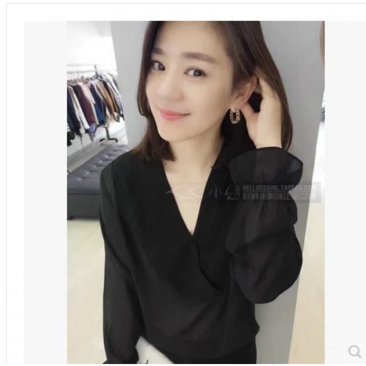 9263 Camicia con colletto a V e personalità europea a maniche lunghe in chiffon