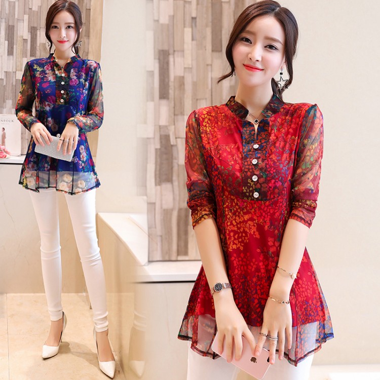 9325 Camicetta in chiffon stampato nuova camicia slim a maniche lunghe autunnale