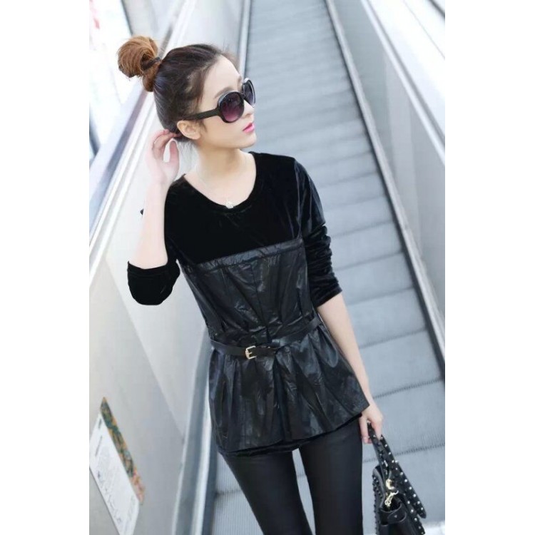 TE575LLJ Top in vita sottile in pelle con giunture in velluto di nuovo stile