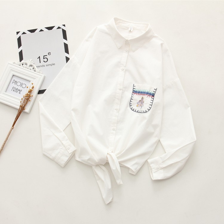 6905 camicia a maniche lunghe con tasca nuova ricamata primaverile