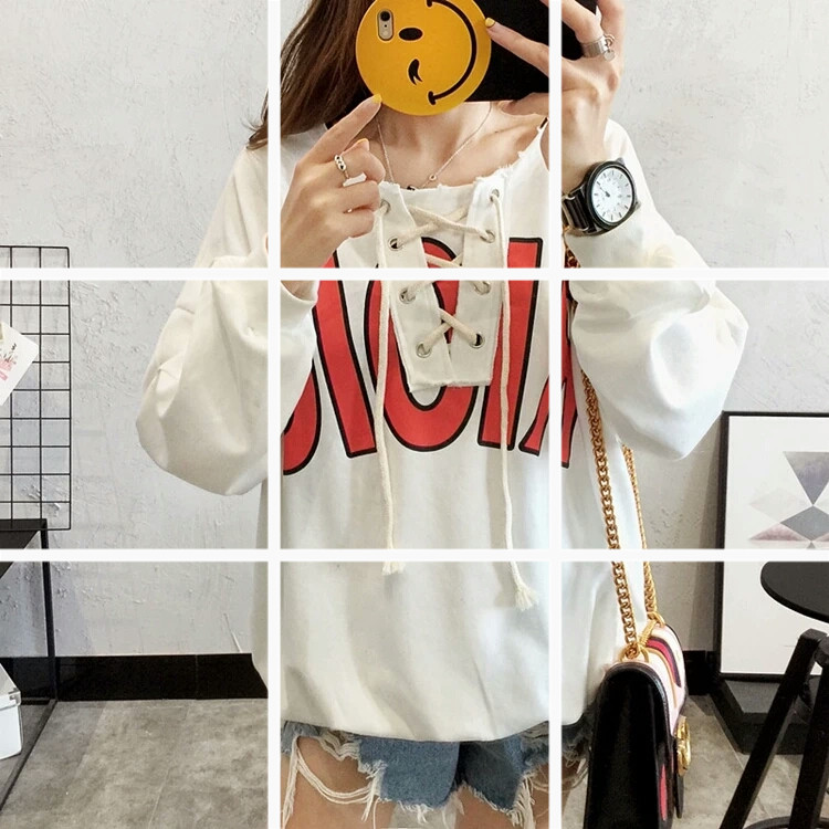 Felpa con cravatta corta selvaggia per studenti sciolti di moda coreana autunno e inverno 2017