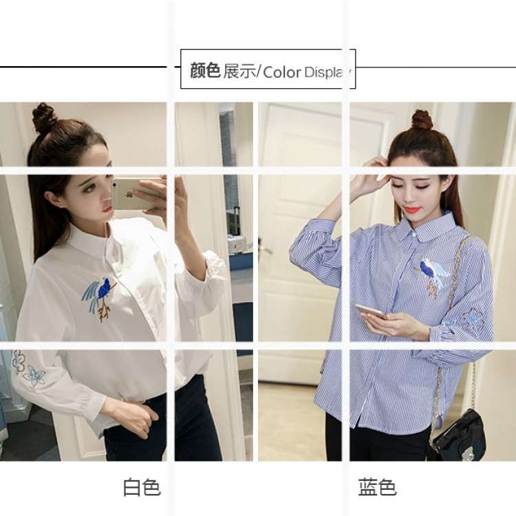 TE9952WJYS Camicia ampia a maniche lunghe a righe alla moda coreana