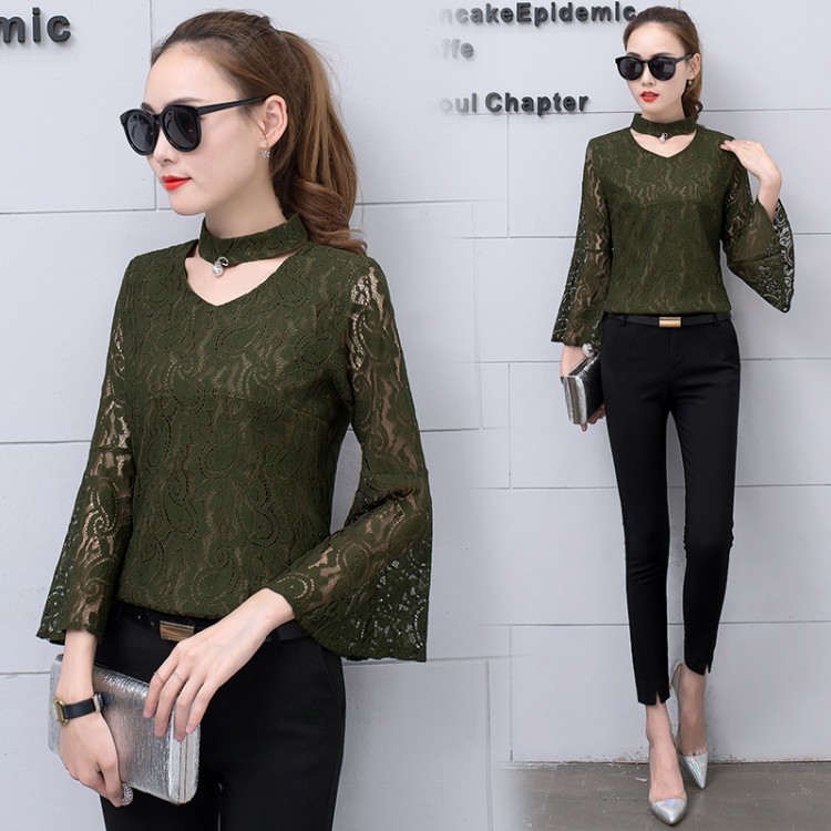 TE9799WJYS Blusa in stile coreano con maniche scavate in pizzo all’uncinetto