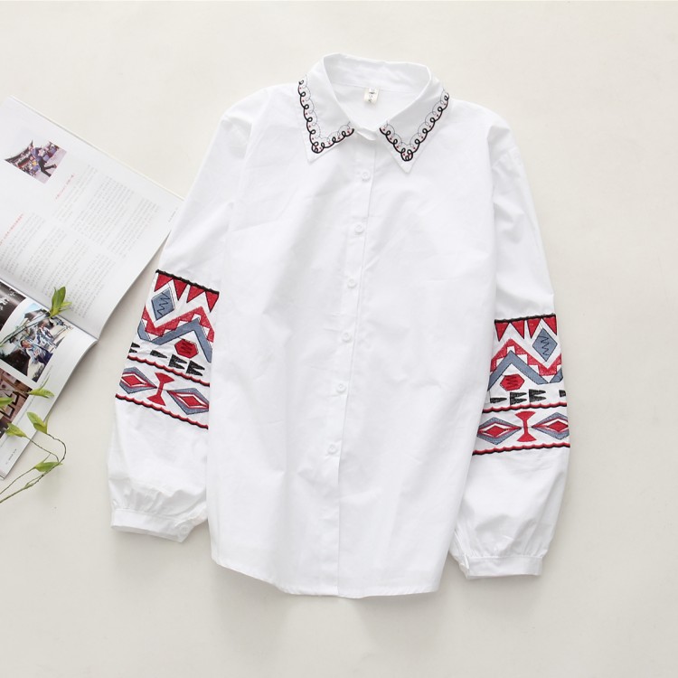 6902 camicia ampia a maniche lunghe in cotone ricamato con fiori freschi