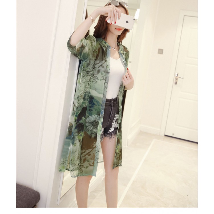 TE804AYG Cardigan lungo con protezione solare in chiffon stampato