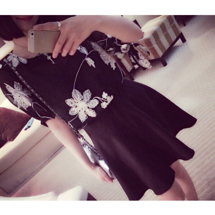 TE9038 Blusa in chiffon con ricamo vintage, fresca ed elegante