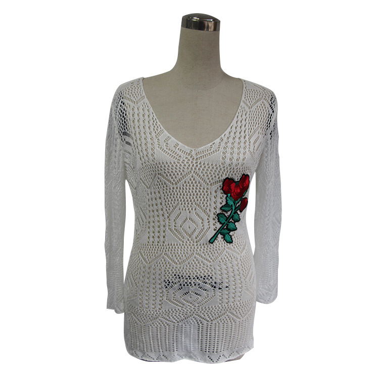 859 Blusa da spiaggia alla moda Amazon con ricamo lavorato a maglia