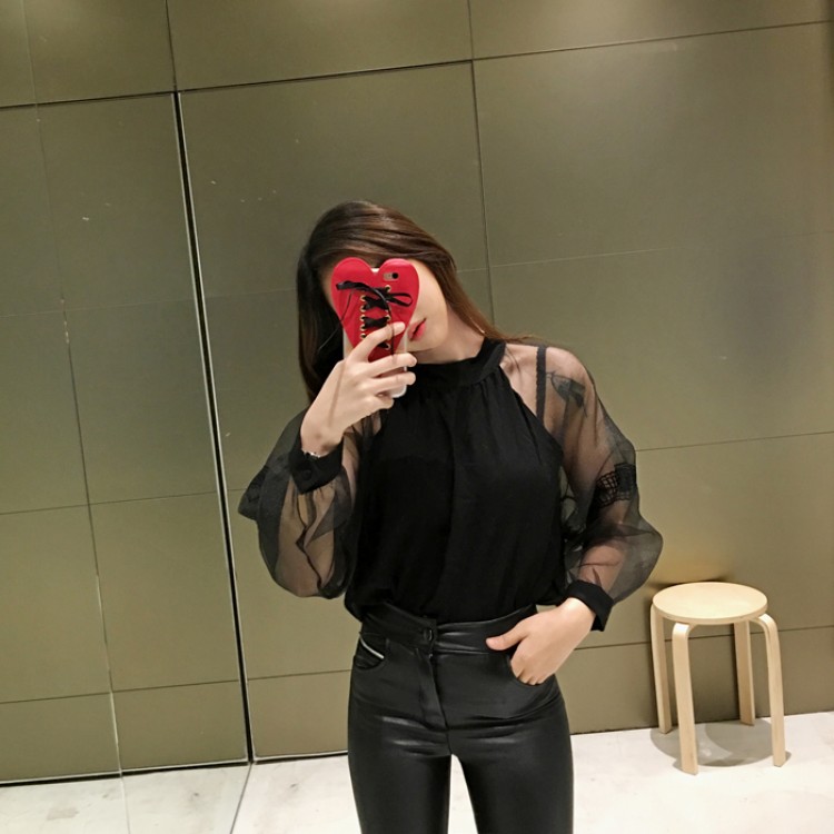 TE9502YJZJ Top in pizzo a maniche lunghe con temperamento alla moda coreana