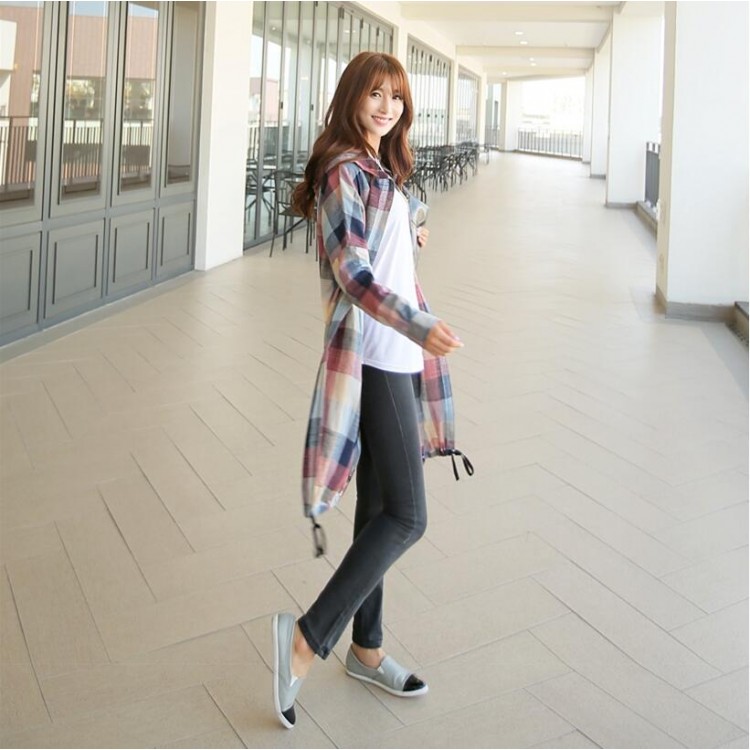 TE1503GJWL Blusa lunga scozzese grande stile joker ampio autunno