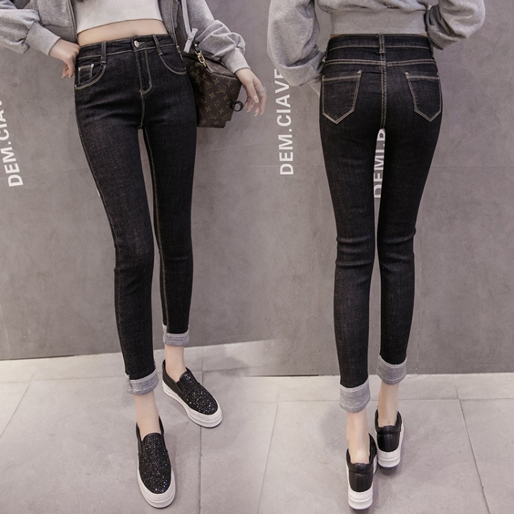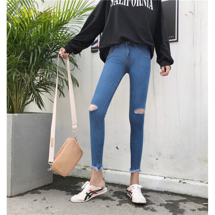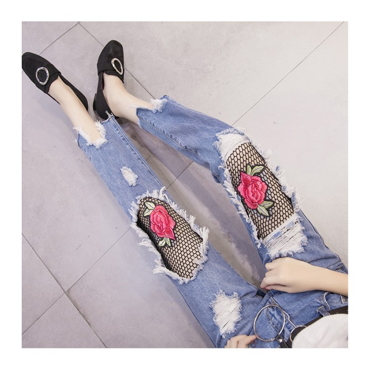 2833 Fori rose calze a rete jeans nono pantaloni a matita