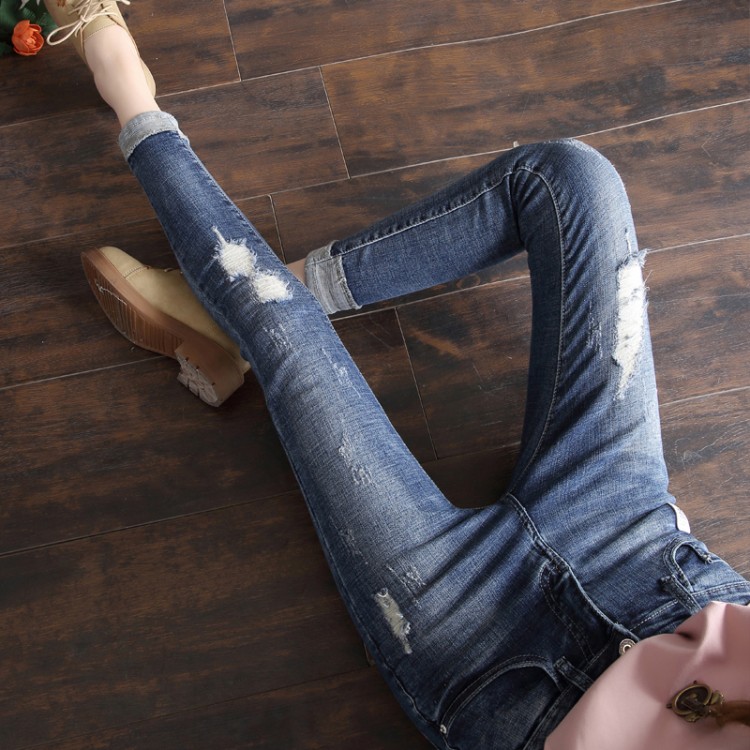 2833 Fori rose calze a rete jeans nono pantaloni a matita