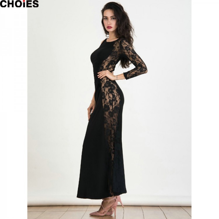 TE2253XYD Vendita calda di Ebay pizzo splicing sexy maxi vestito scavato a coda di pesce