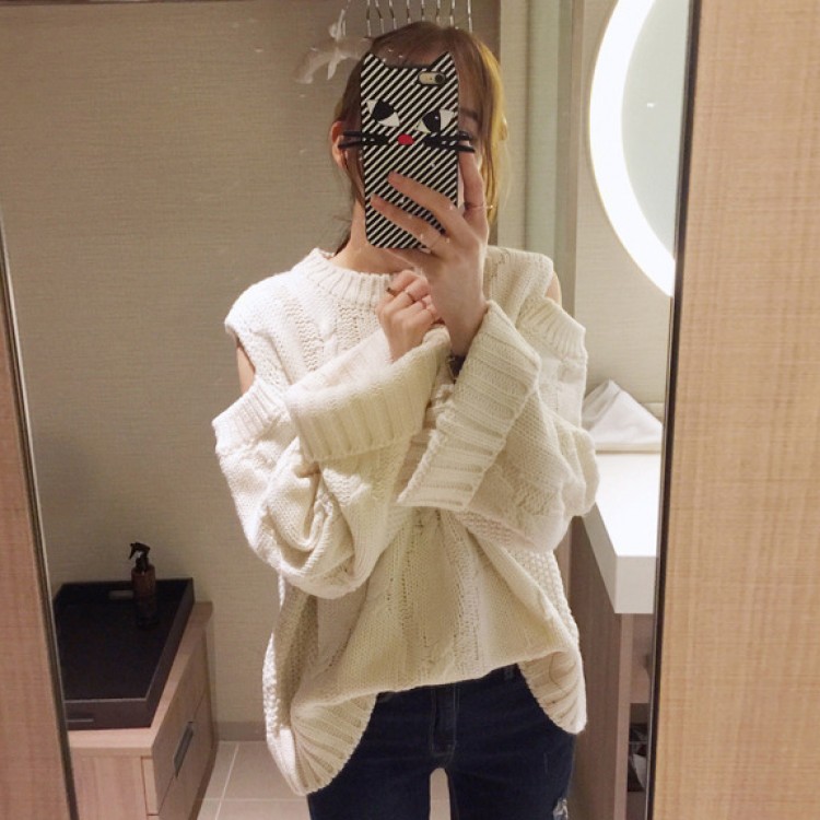 6143 fuori dalla spalla, polsini larghi, maglione con cappuccio lavorato a maglia a torsione allentata