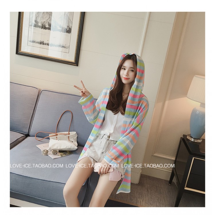 TE6742YRYY Cappotto con protezione solare a righe colorate, sciolto e alla moda