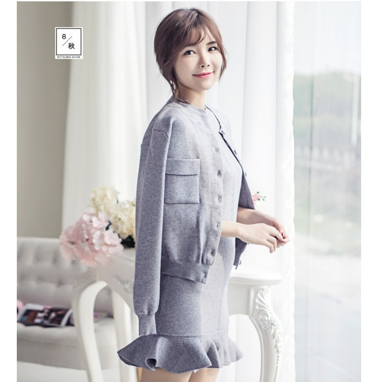 1130 Giacca cardigan in maglia a maniche lunghe sottile alla moda coreana e abito a coda di pesce in due pezzi