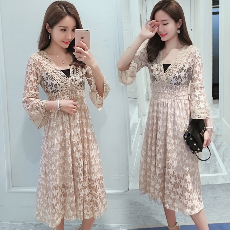 Abito premaman in pizzo con scollo a V in pizzo 1790 (con top a tubo)