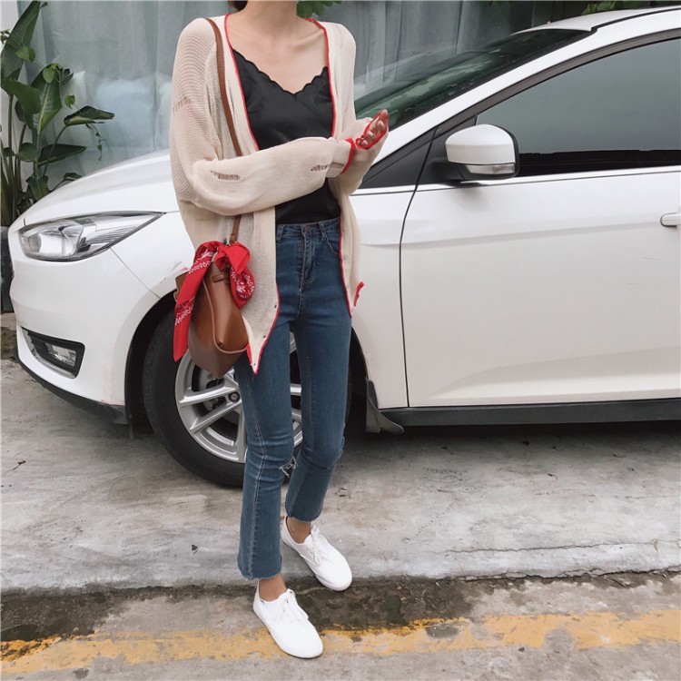 1149 giacca in maglia con protezione solare a maniche lunghe in colore contratto sciolto