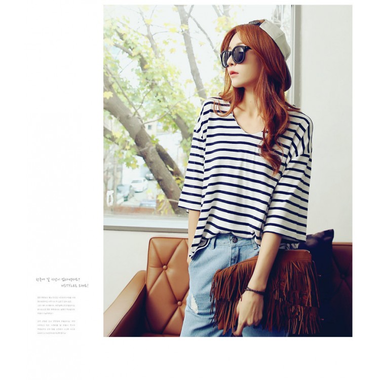 TE2713XYD T-shirt ampia con scollo a V, maniche a pipistrello, nuovo stile