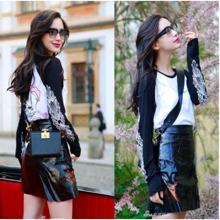 881 T-shirt stampata coreana a maniche lunghe