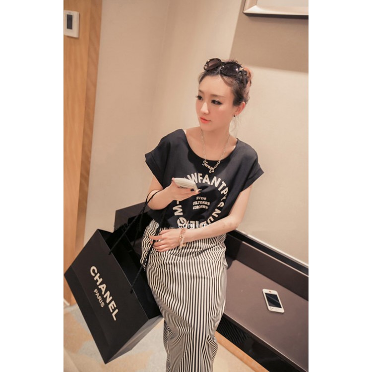 TE8815JDYJ T-shirt coreana fashion joker a righe dolci con abito con reggicalze