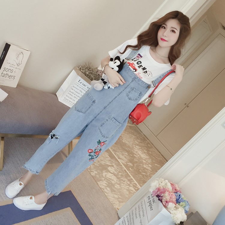 Jeans con bretelle ricamati floreali 916