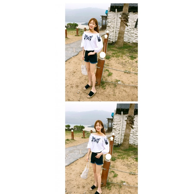 TE1306GJWL Camicia con scollo a barchetta con ricamo floreale carino alla moda giapponese