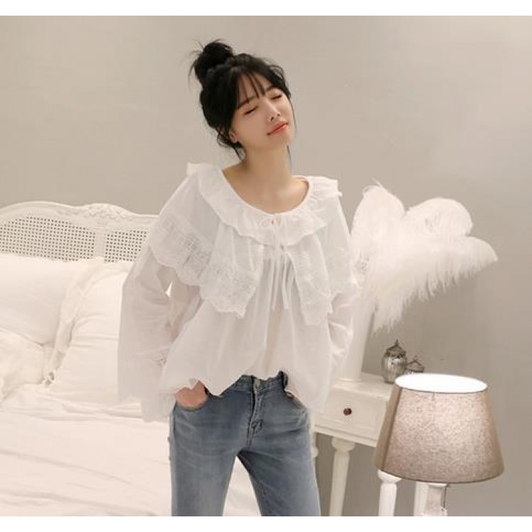 6292 camicia cava con collo rotondo dolce in pizzo fresco e bello