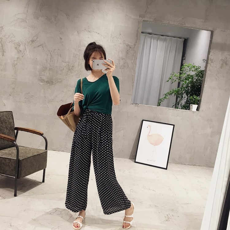 TE5266QBY Pantaloni in chiffon a gamba larga con puntini di nuovo stile e di bell’aspetto