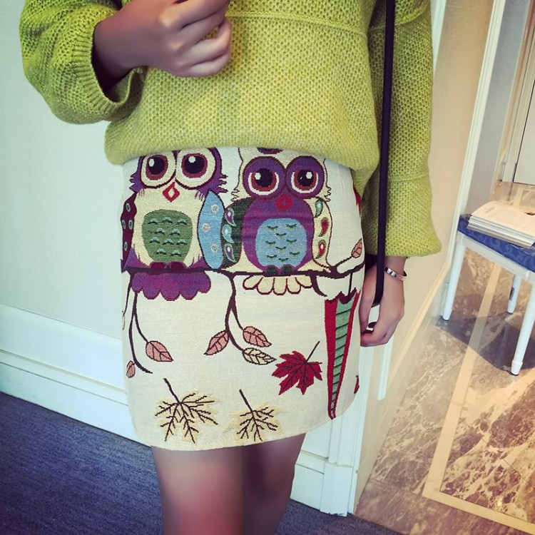 TE8236BLFS Gonna attillata con stampa gufi in stile Harajuku