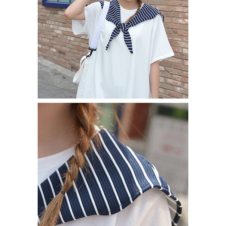 TE9790WJYS Top con scollo tondo, colletto allacciato e strisce stile navy
