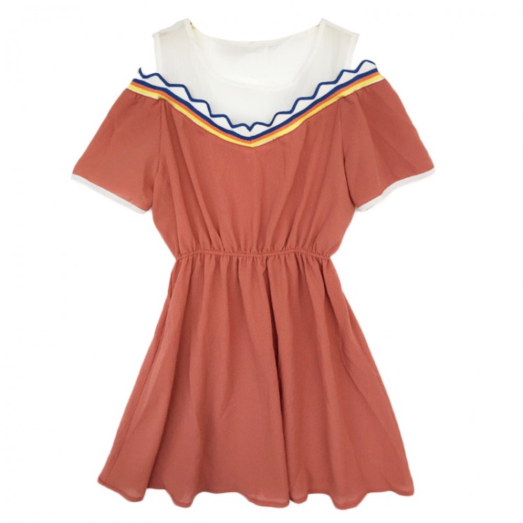 7219 abito con spalle scoperte con cuciture in filo di colore fresco